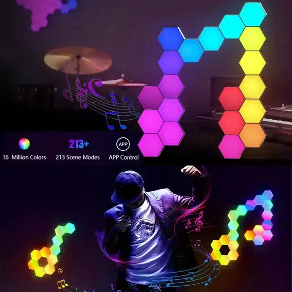 Apportez une touche moderne et personnalisable à votre intérieur avec cette lampe murale hexagonale intelligente RGB. Grâce à sa forme en nid d’abeille et son système RGB IC, cette lampe crée une ambiance immersive et colorée, parfaite pour une chambre, un salon ou un setup gaming.Avec le contrôle via application mobile ou télécommande, ajustez la couleur, le rythme et la synchronisation musicale sans vous déplacer. La fonction DIY permet d’agencer librement les modules selon vos envies, pour un effet visuel unique.Conçue en acrylique de haute qualité et équipée de LED basse consommation, elle offre à la fois durabilité, économie d’énergie et personnalisation totale de votre ambiance lumineuse.